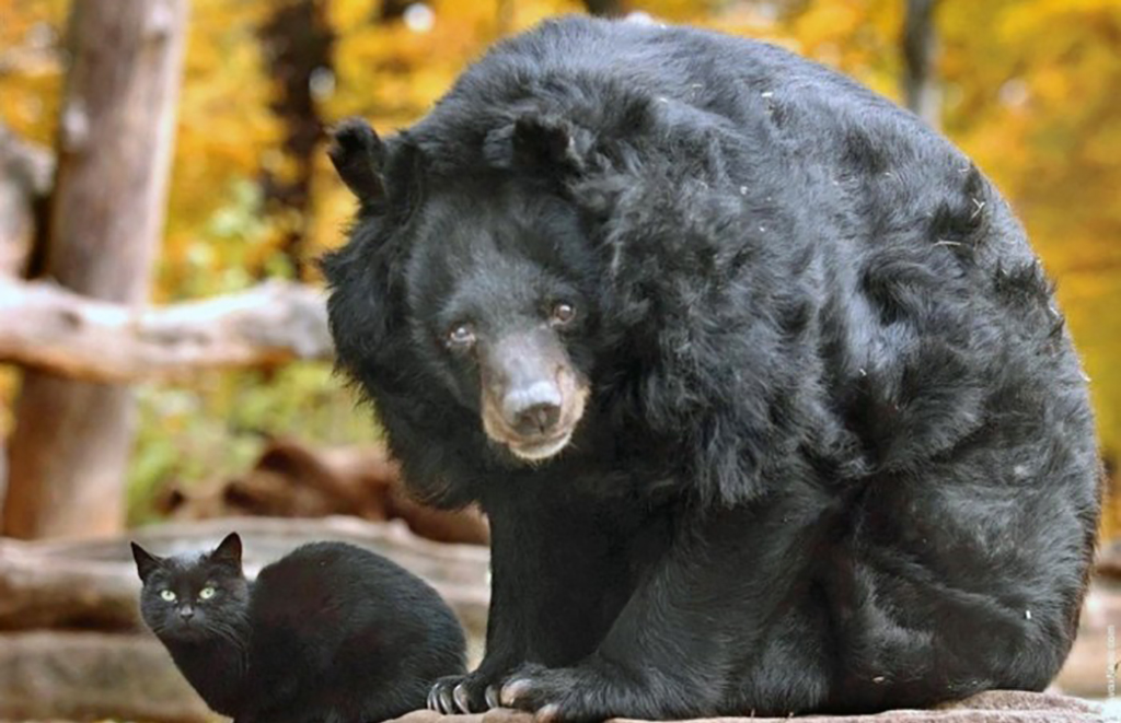 In 2000, at the Berlin Zoo, zookeepers and other employees were observing the enclosure of am Asiatic bear named M00e4uschen when they were completely taken aback. They couldn't believe their eyes when they saw a small black house cat that they later named Muschi wandering around inside of the bear2019s enclosure.